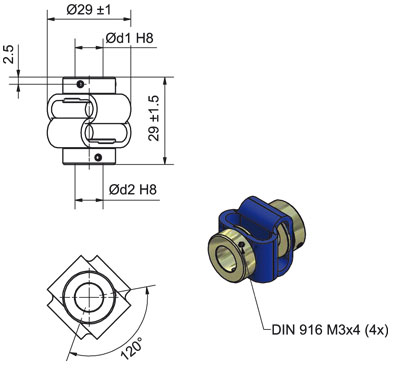 弹性联轴器:Ø d1 = 10 mm, Ø d2 = 10 mm