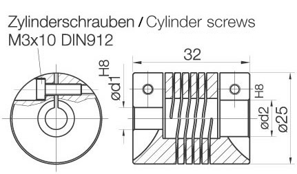 螺旋联轴器:Ø d1 = 10 mm, Ø d2 = 10 mm