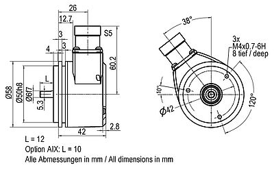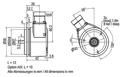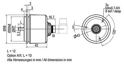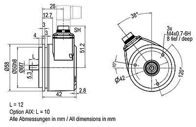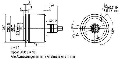 The encoder WDGI 58A shaft: Ø 6 mm is also available with a shortened shaft L = 10 mm.